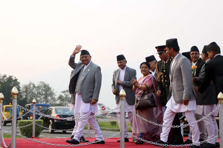 Prime Minister Oli was received at the VVIP lounge of the Tribhuvan International Airport by Speaker Krishna Bahadur Mahara, Deputy Prime Minister Ishwar Pokharel, Home Minister Ram Bahadur Thapa, Foreign Minister Pradip Gyawali, NCP General Secretary Bishnu Prasad Poudel, NCP parliamentary party deputy leader Subas Nembang, Heads of Constitutional Bodies, MPs and high-ranking government officials.