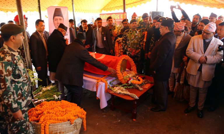 On the occasion, Prime Minister KP Sharma Oli offered national flag to the dead body of Minister Adhikari.
