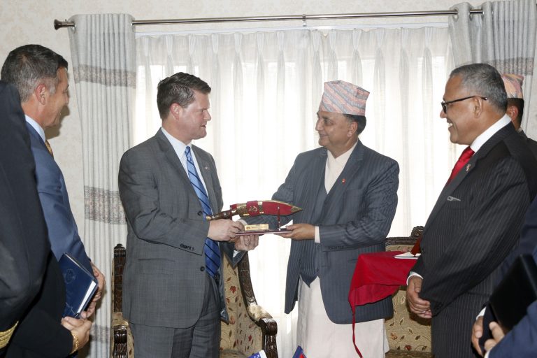 Nepal Foreign Affairs (KATHMANDU, 5 December 2019) – Visiting US Assistant Secretary for Indo-Pacific Security Affairs, Randall G. Schriver, today called on Deputy Prime Minister and Minister for Defence Ishwor Pokhrel, urging later to be positive towards the ‘ Indo Pacific Strategy’.
